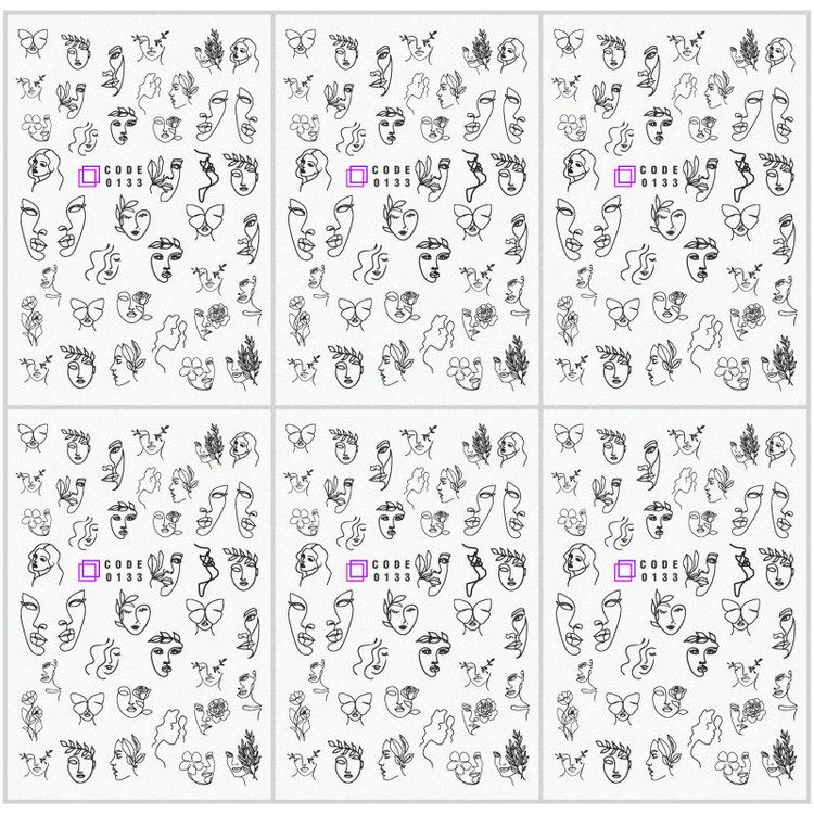 برچسب لنز ناخن مدل صورت خطی مجموعه 6 عددی