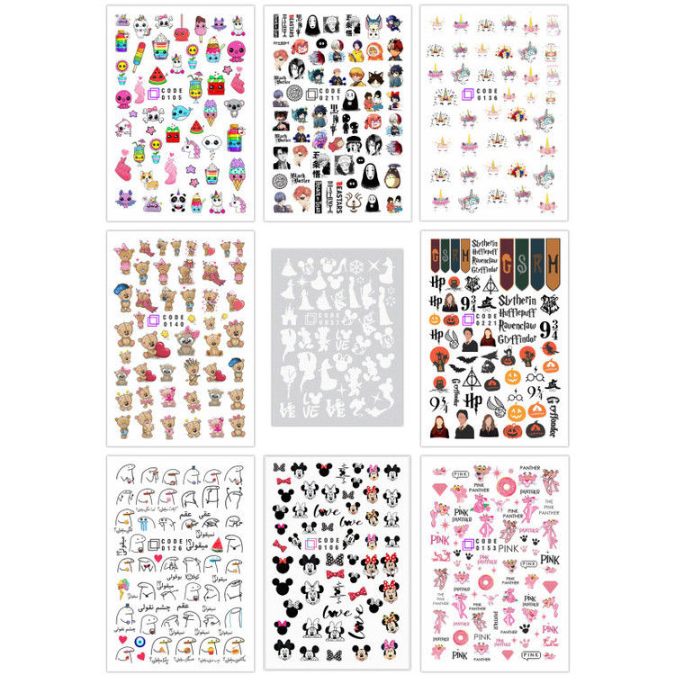 برچسب لنز ناخن مدل کارتونی مجموعه 9 عددی