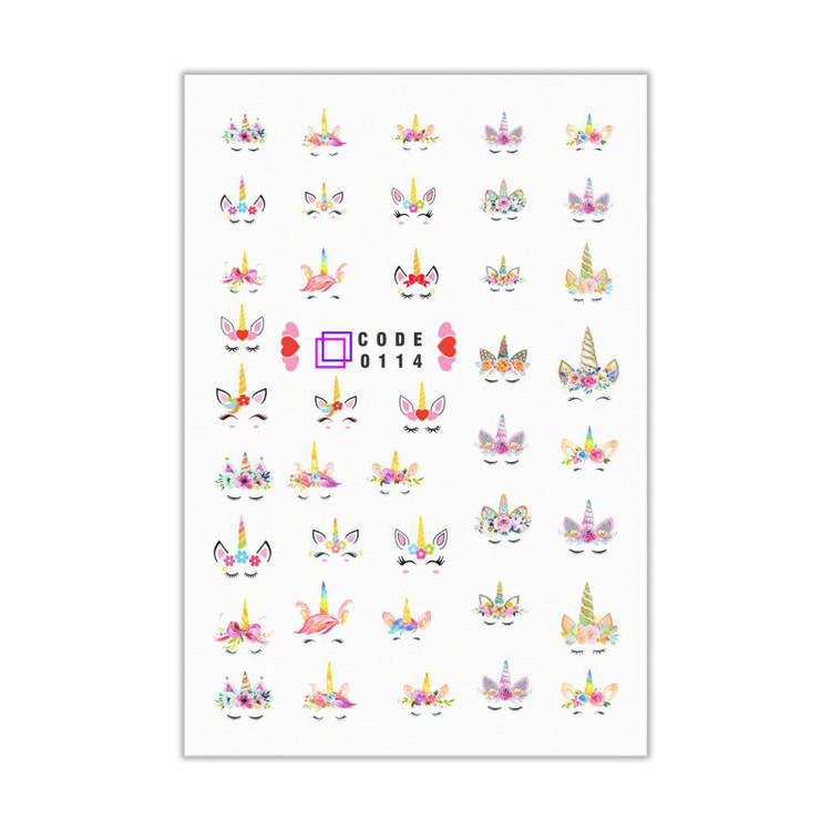 برچسب لنز ناخن مدل یونیکورن تک شاخ کد 114