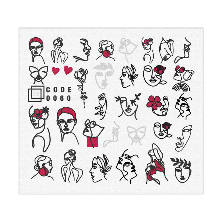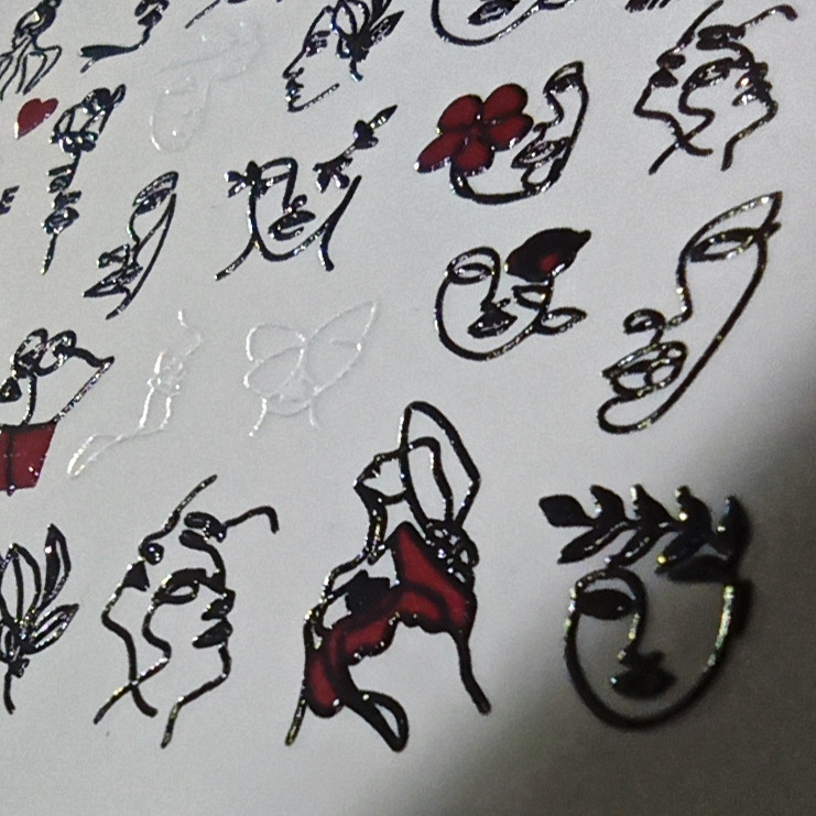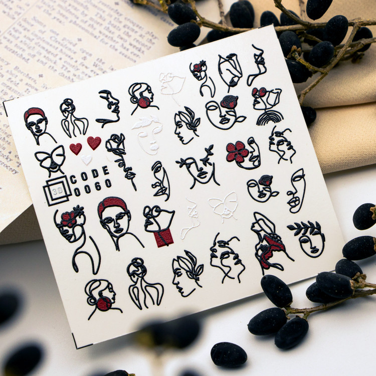 برچسب لنز ناخن سه بعدی برجسته صورت خطی کد 60
