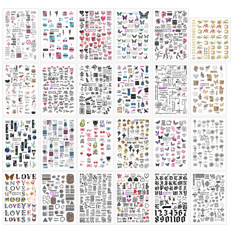 برچسب لنز ناخن مدل متن انگلیسی مجموعه 24 عددی