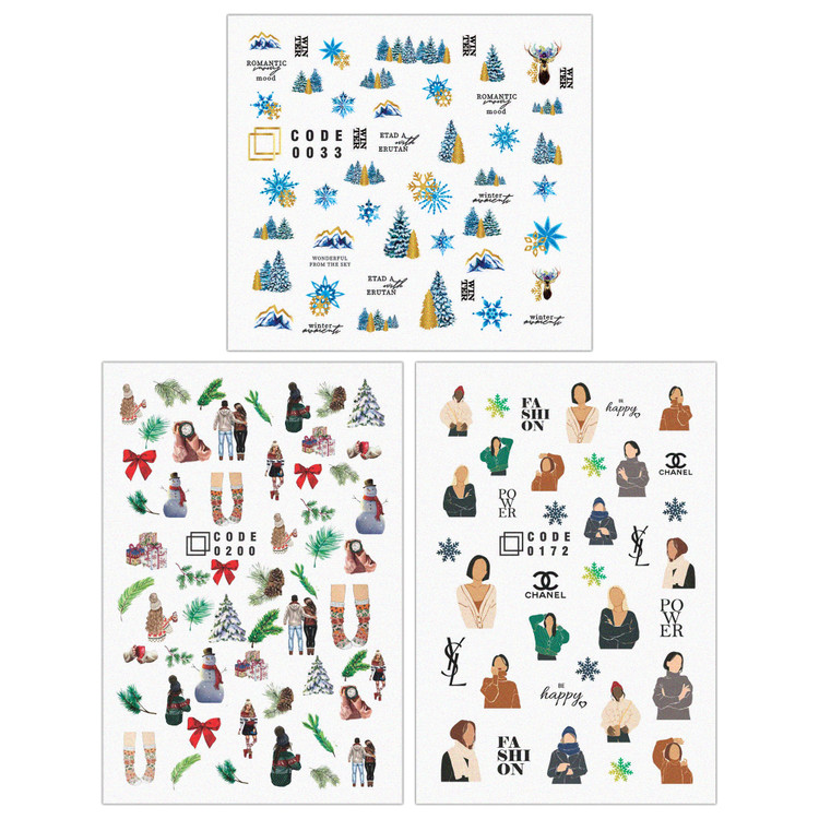 برچسب لنز ناخن مدل زمستانی مجموعه 3 عددی