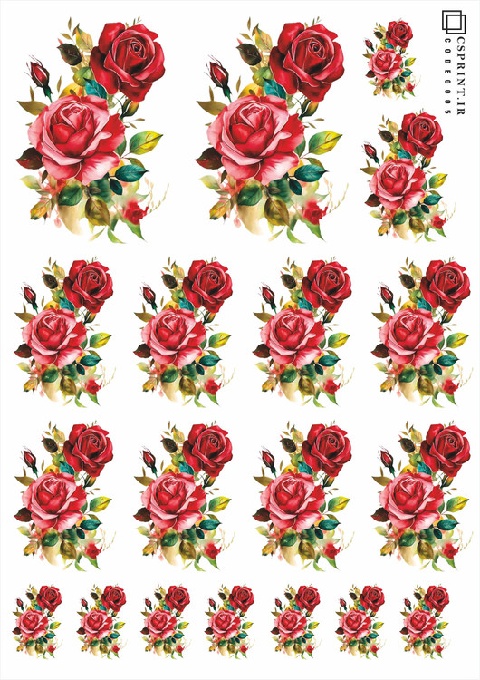 تنوع در ابعاد طرحها: شیت ۲۰ در ۲۸ سانتیمتری این محصول شامل گلهایی با ارتفاعهای متنوع (حدود ۶ سانتیمتر) است که تزیین انواع ظروف و اکسسوریها را پوشش میدهد.