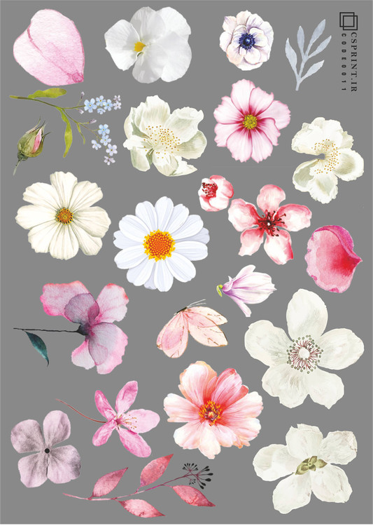 ظرافت و زیبایی در طراحی: گلهای سفید و صورتی این مجموعه با دقت بسیار بالا طراحی شدهاند تا جلوهای طبیعی و هنرمندانه به محصولات شما ببخشند.