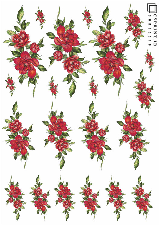 با طرحی شاد و جذاب از گلهای قرمز، این ترانسفر برای ناخن، شمع، لیوان و دیگر سطوح صاف مناسب است. کیفیت بالا و استفاده آسان آن، کار شما را حرفهای و چشمنواز میکند.